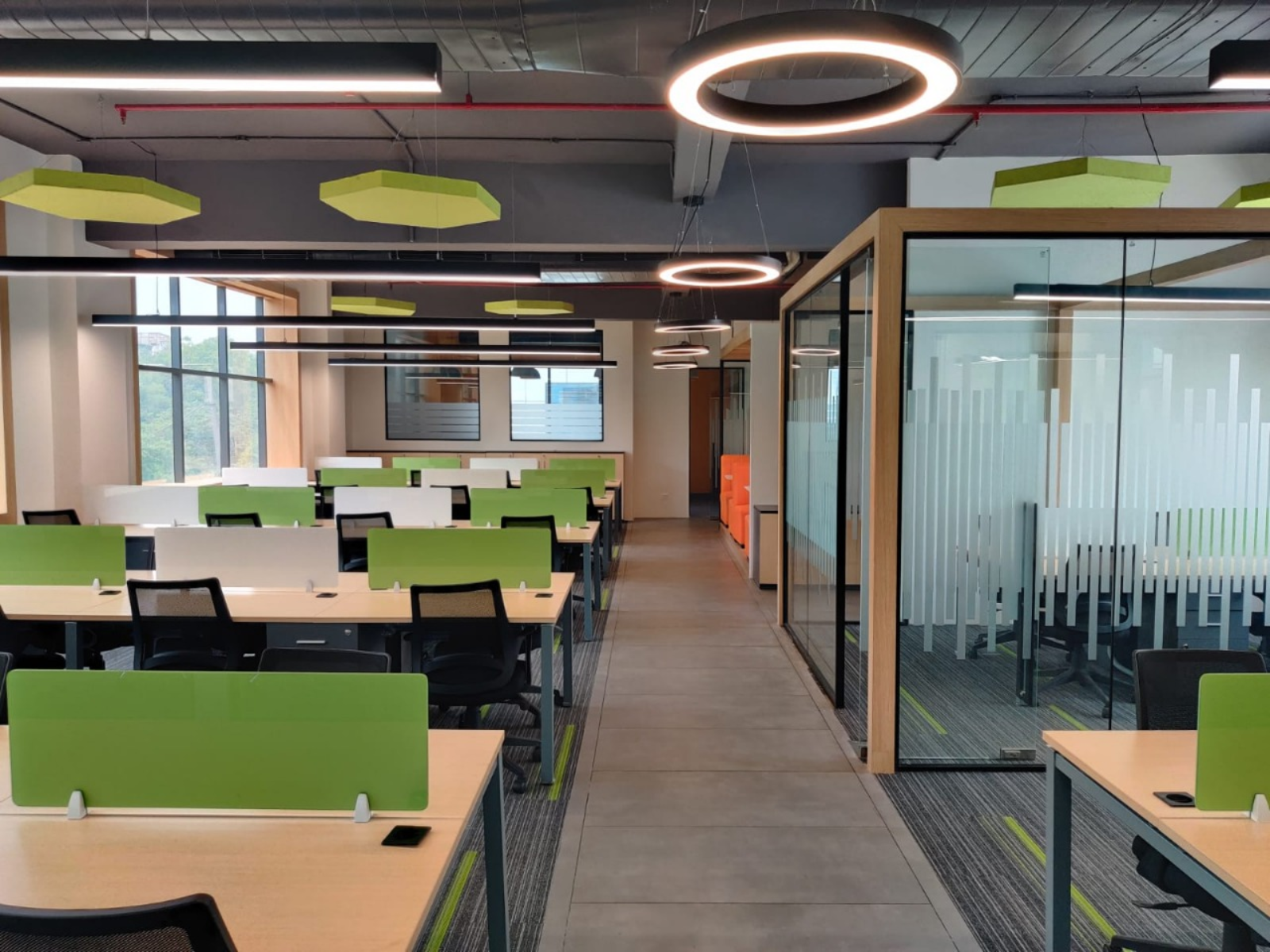 Ergonomic and spacious workstations that enhance productivity and teamwork.
